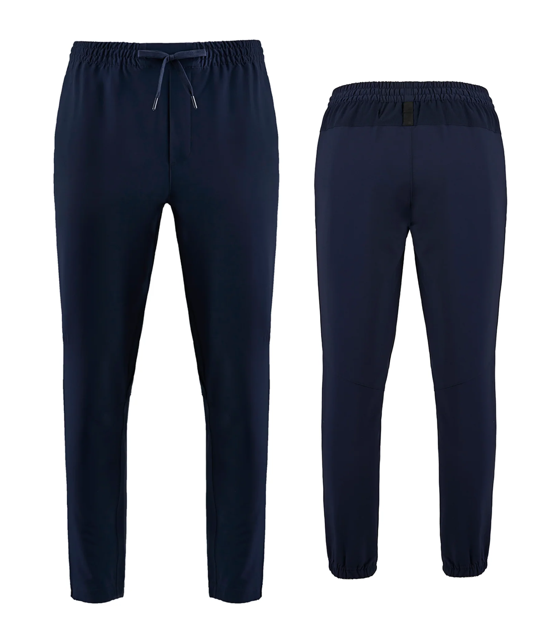 Tapered leg with elastic at back of hem for men's and ladies.